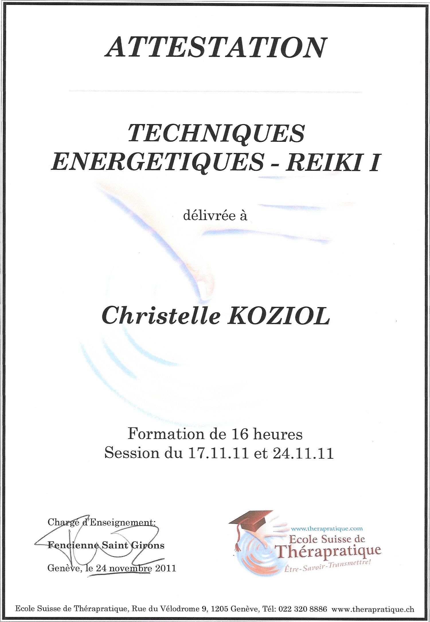 - Techniques énergétiques-Reiki I